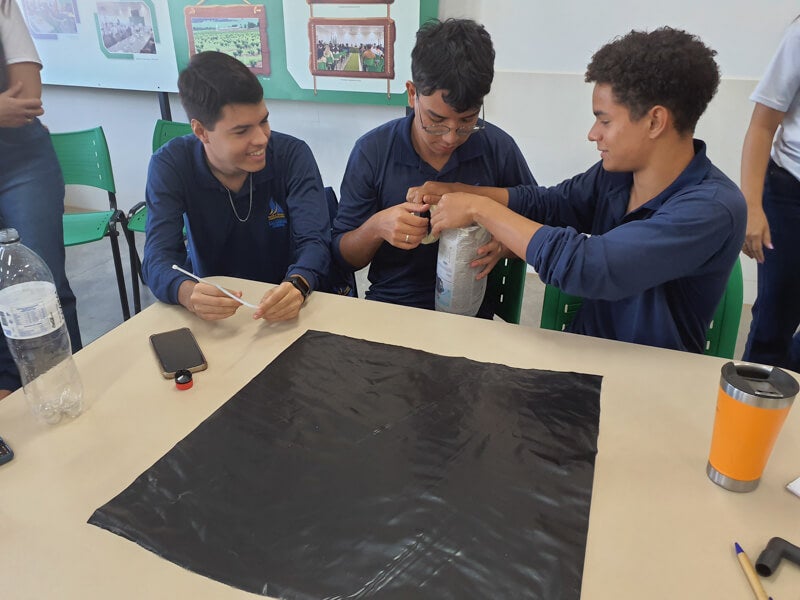 Em seguida, os alunos participaram de uma oficina para a confecção artesanal de iscas destinadas à captura de abelhas, as quais foram alocadas em árvores distribuídas nas adjacências da escola. Essas atividades constituem os primeiros passos para a implantação do meliponário da ETASA, onde os alunos terão oportunidade de aprender e se aprofundar sobre o processo de criação e manejo de abelhas sem ferrão.